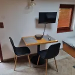 这间30平方米的公寓距离卡罗维瓦利国际机场有80公里. 客人可以在露台放轻松.